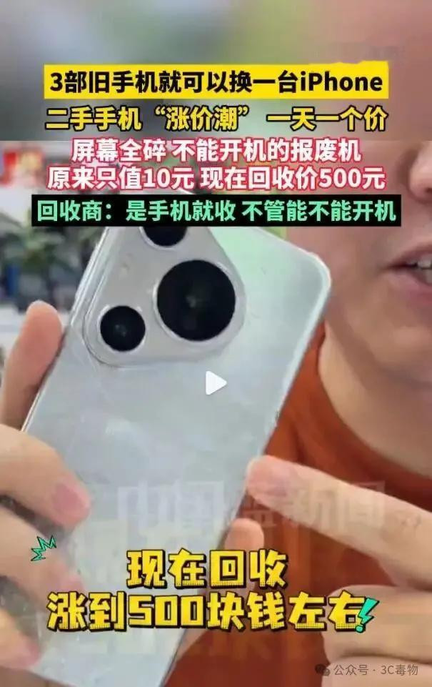 蓝本售价10元的旧手机,当今回收价钱依然涨到500元。